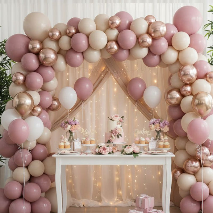 Décoration Festive Ballons de Luxe Tons Doux et Dorés