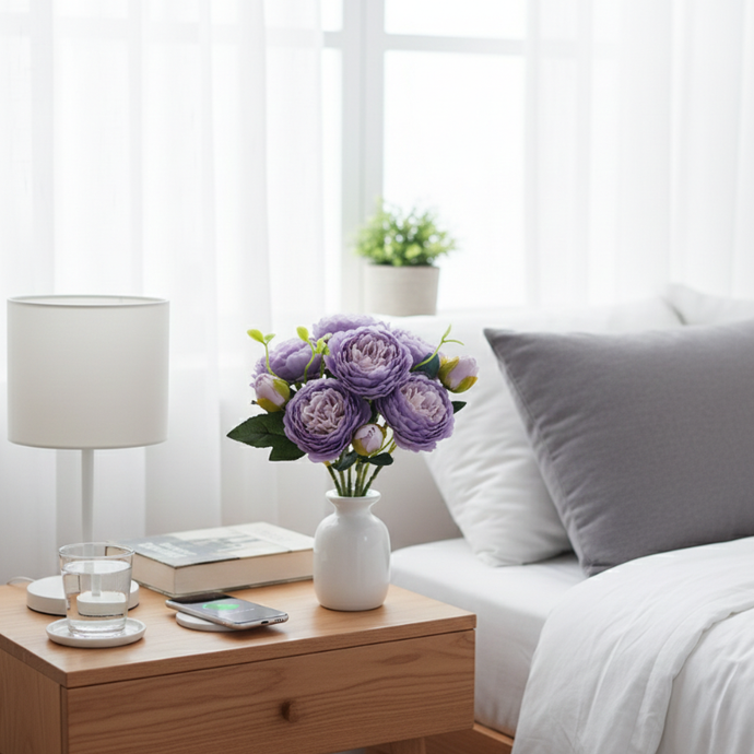 Fleur Artificielle Violet En Composition Avec Roses Réalistes