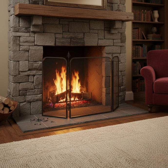 Pare Étincelles De Cheminée Avec Trois Panneaux Métalliques