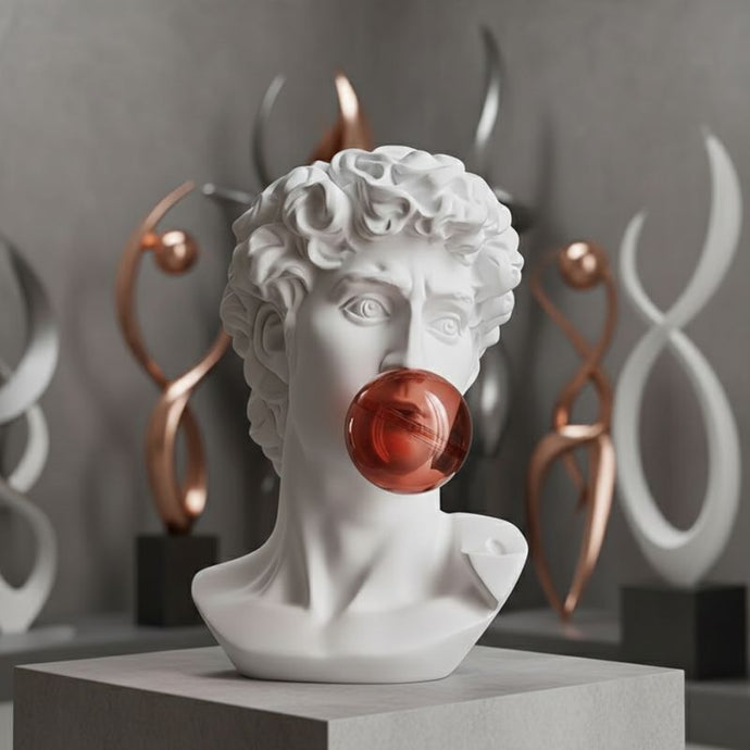 Sculpture David Moderne Avec Sphère Rouge Artistique