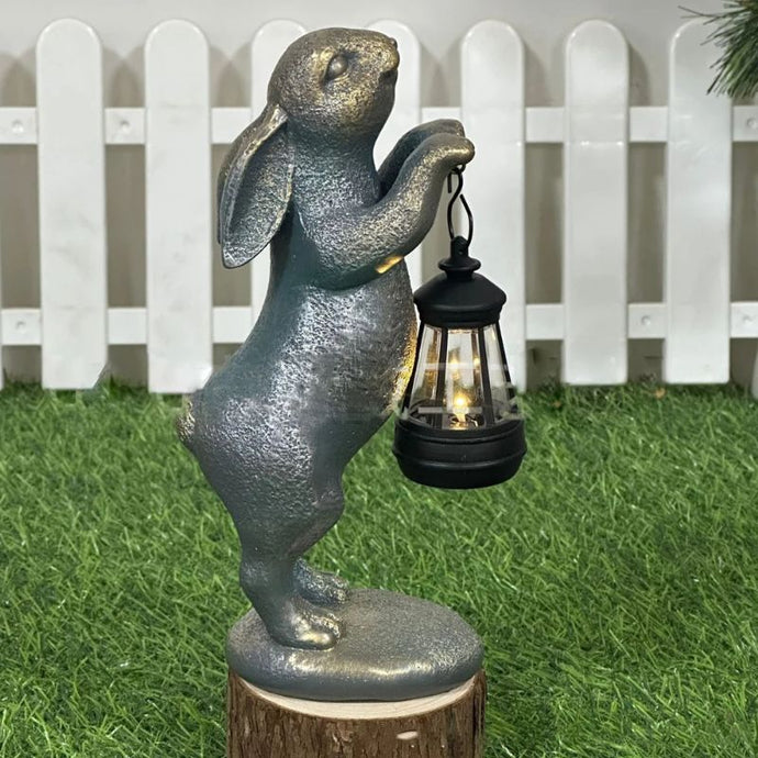Sculpture Lapin Avec Lanterne Solaire: Élégance Extérieure