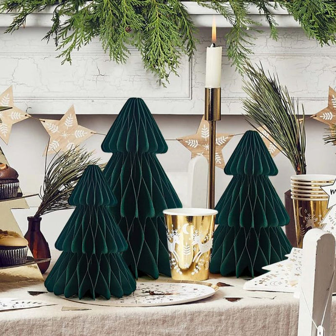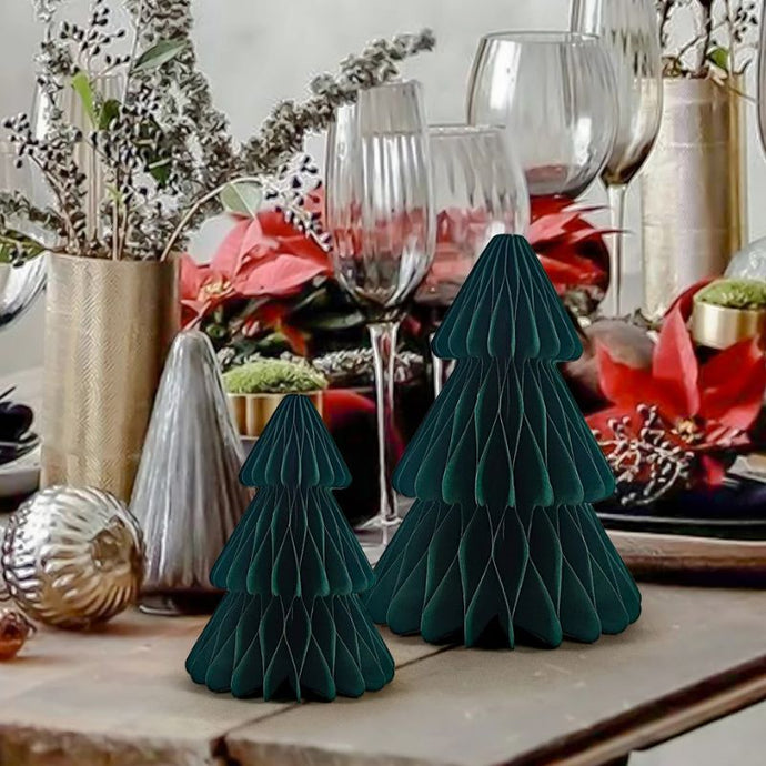 Ajoutez une touche festive à votre intérieur avec la Sculpture Papier Sapin Alvéolé en vert vibrant, disponible en 3 tailles adaptées à tout espace pour sublimer votre décoration de fête.