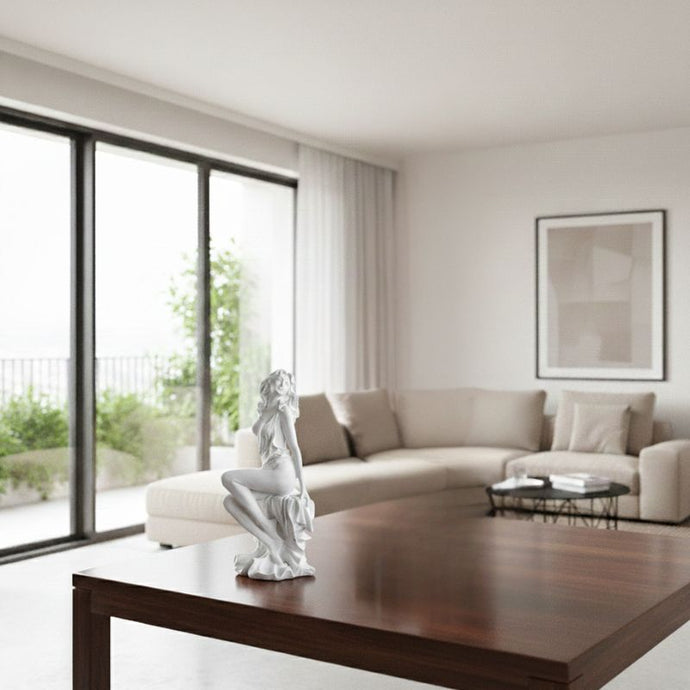 La Sculpture Venus Assise Avec Silhouette Sensuelle en résine et plastique offre une allure nordique raffinée, idéale pour sublimer votre espace.