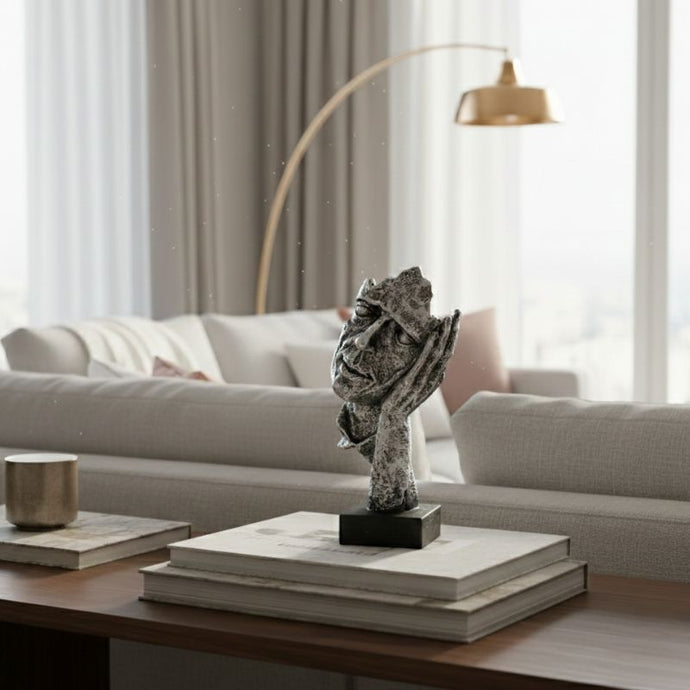 La Sculpture Visage Décorative en style art moderne se décline en 3 couleurs captivantes - argent, or et beige - pour sublimer vos espaces.