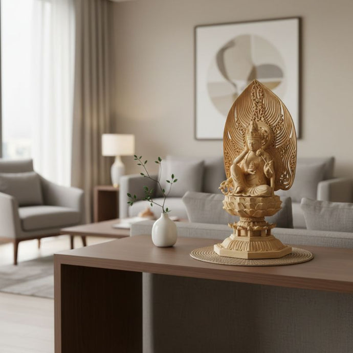 La Statuette En Ivoire Sculpture Sacrée offre une touche spirituelle à votre intérieur avec sa taille de 30 cm et sa teinte beige apaisante.