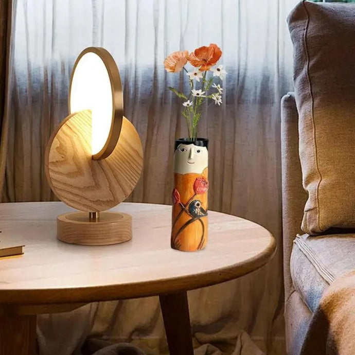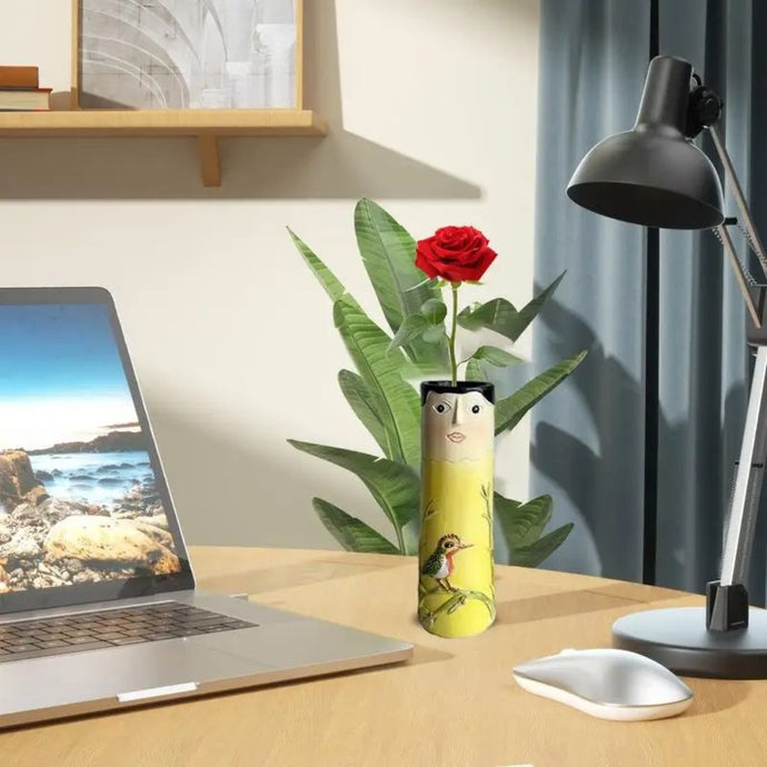 Ajoutez une touche de fraîcheur à votre décor avec ce vase en résine peint à la main, orné d'un motif printanier. Son design amusant et bohème, représentant une famille humanoïde, est idéal pour mettre en valeur vos fleurs et bourgeons.