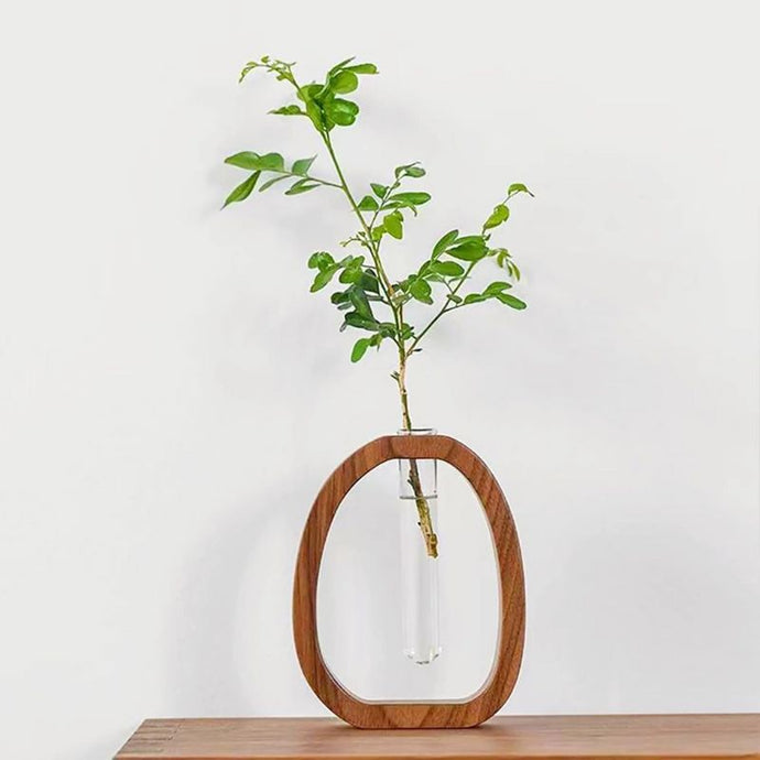 Vase en Bois avec Récipient en Verre pour Fleurs