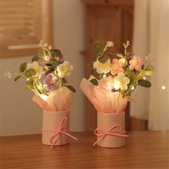 Vase en Crochet avec Roses en Laine