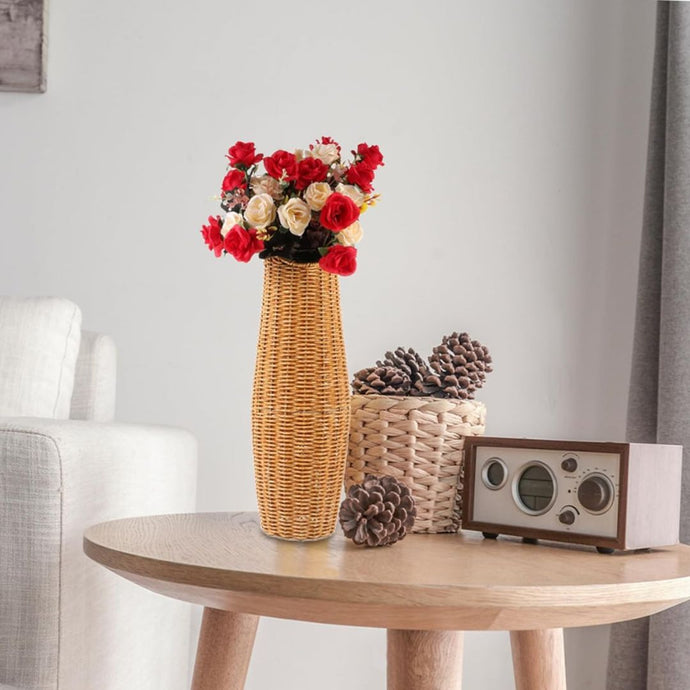 Ce vase en osier tissé apporte une touche pastorale à tout espace. Parfait pour exposer des plantes ou comme décoration pour un bureau, une maison, ou des événements spéciaux comme un mariage.