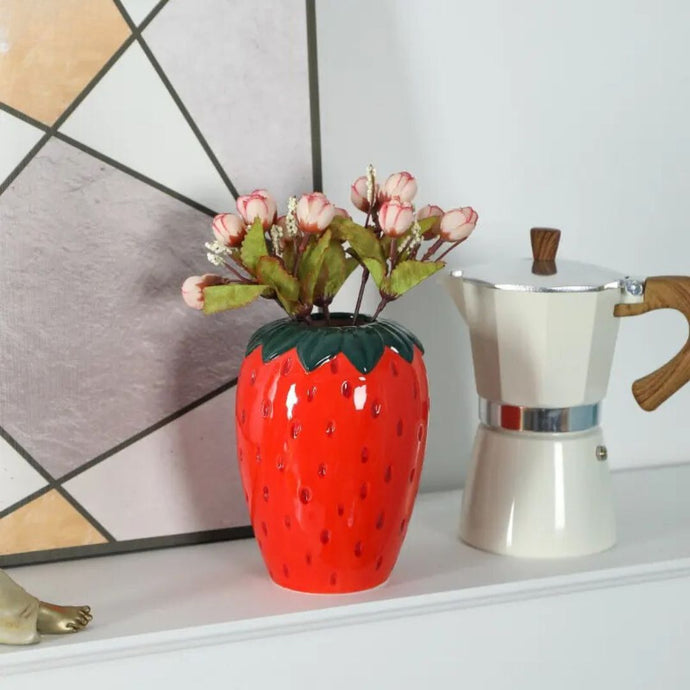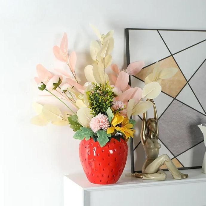 Transformez votre espace avec ce vase en céramique original en forme de fraise. Parfait pour les pots de fleurs hydroponiques ou pour embellir votre bureau avec des fleurs artificielles, ce vase ajoute une note joyeuse et colorée à chaque pièce.