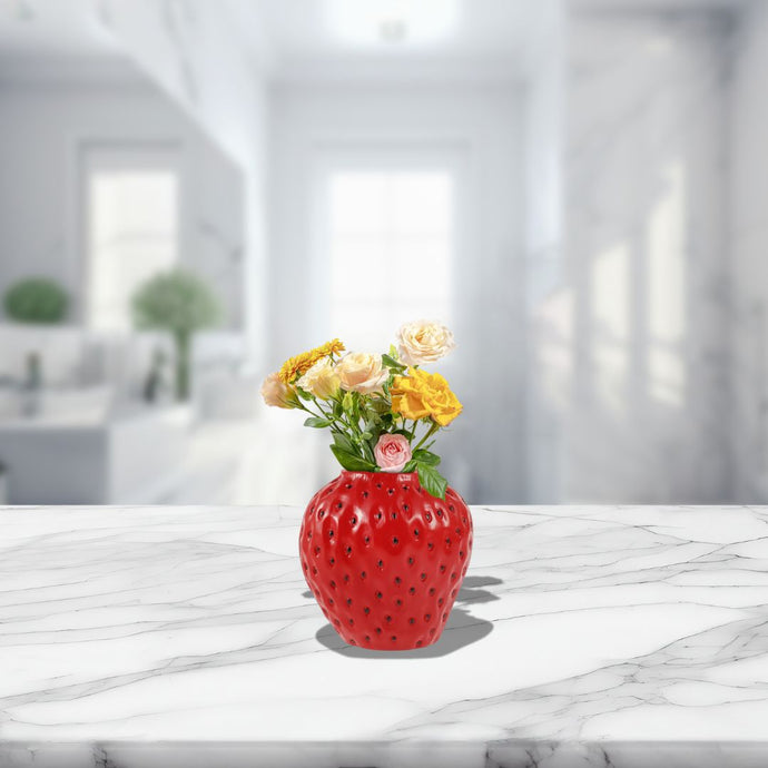 Ce vase en céramique en forme de fraise apporte une note ludique à votre intérieur. Parfait pour les fleurs ou même comme jardinière, il se transforme en ornement charmant sur la table, apportant une touche colorée à votre espace de vie.