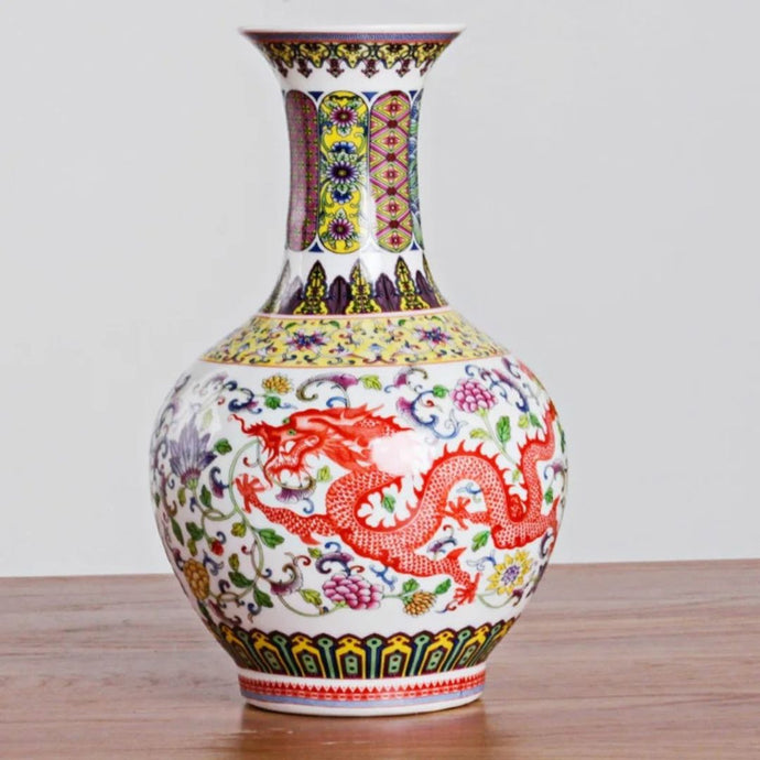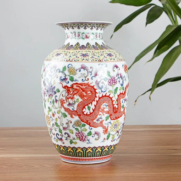 Vase Ming en Céramique Émaillée Dragon et Phoenix