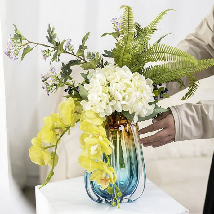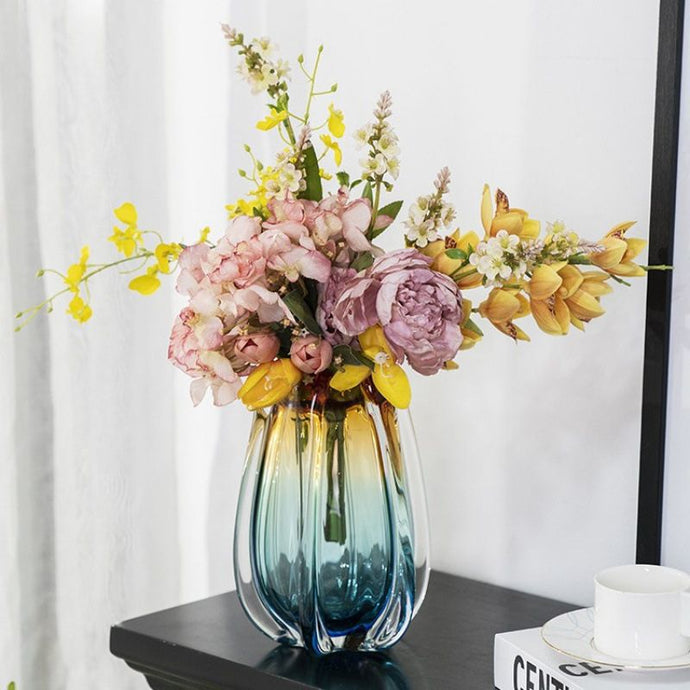 Le Vase Murrano en Verre Coloré marie l’élégance de l’artisanat italien et le design contemporain. Avec ses couleurs tie and dye jaune et bleu, il s’impose comme un véritable objet d’art à exposer. Fabriqué en verre soufflé de qualité, chaque pièce est unique. Taille : 24x17 cm. Idéal en centre de table, sur une console ou en objet déco seul. Sa silhouette élégante et son jeu de couleurs en font un incontournable pour sublimer vos espaces de vie.