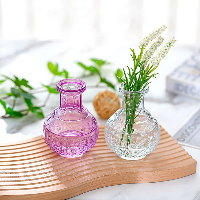 Découvrez le Vase Petit en Verre à Relief Style Vintage, un accessoire de décoration qui apportera une touche d'élégance à votre intérieur. Avec ses 12 cm de hauteur, ce vase en verre présente de délicats reliefs qui reflètent la lumière d'une manière captivante.