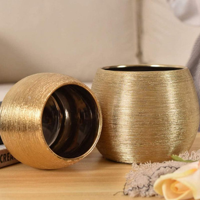 Vase Rond en Céramique Dorée
