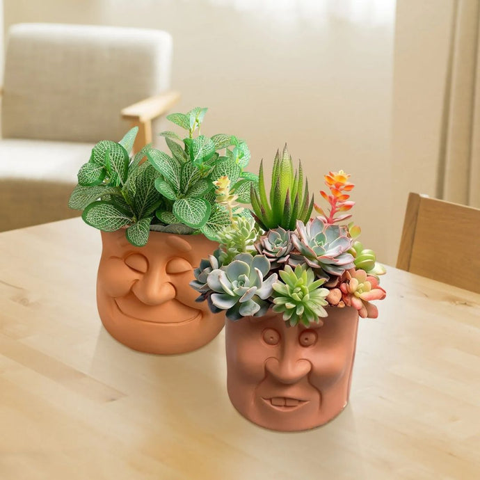 Transformez votre espace avec ce Vase Visage Drôle en Résine, qui attire l'œil et fait sourire. Parfait pour mettre en valeur des fleurs, ce pot ludique s'intègre parfaitement dans une décoration moderne, que ce soit sur une table de nuit ou un bureau.